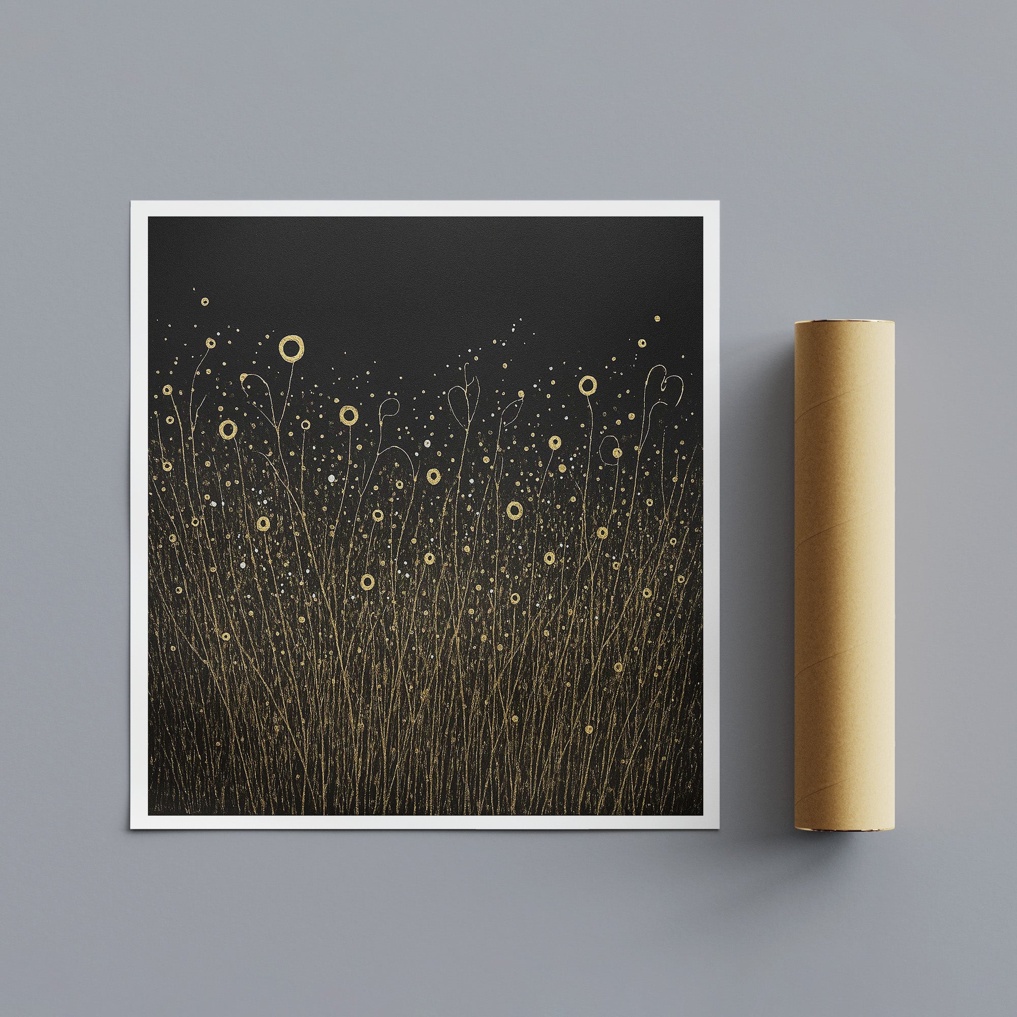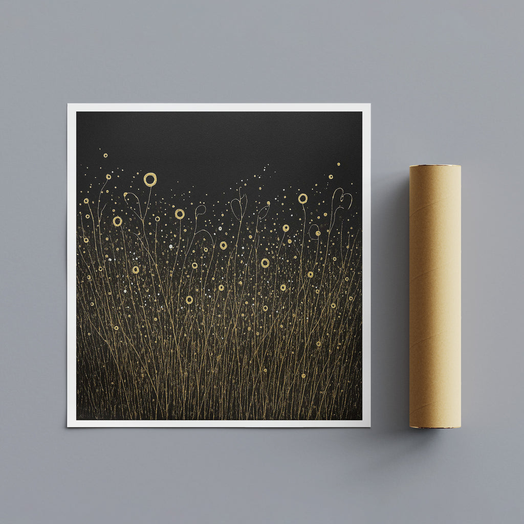 Golden Abstract Blossoms - Wall Art Rolled Canvas Print