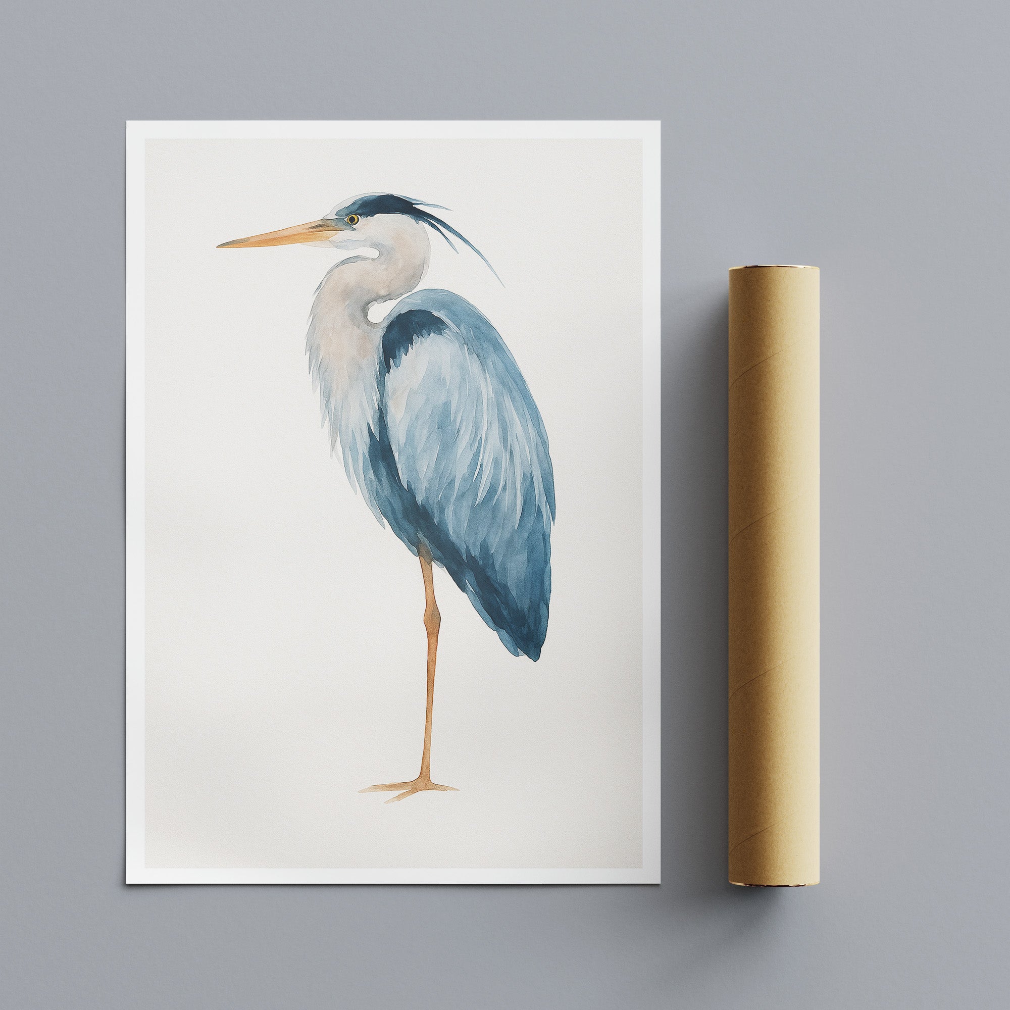 Egret Watercolour Wall Art Rolled Canvas Print
