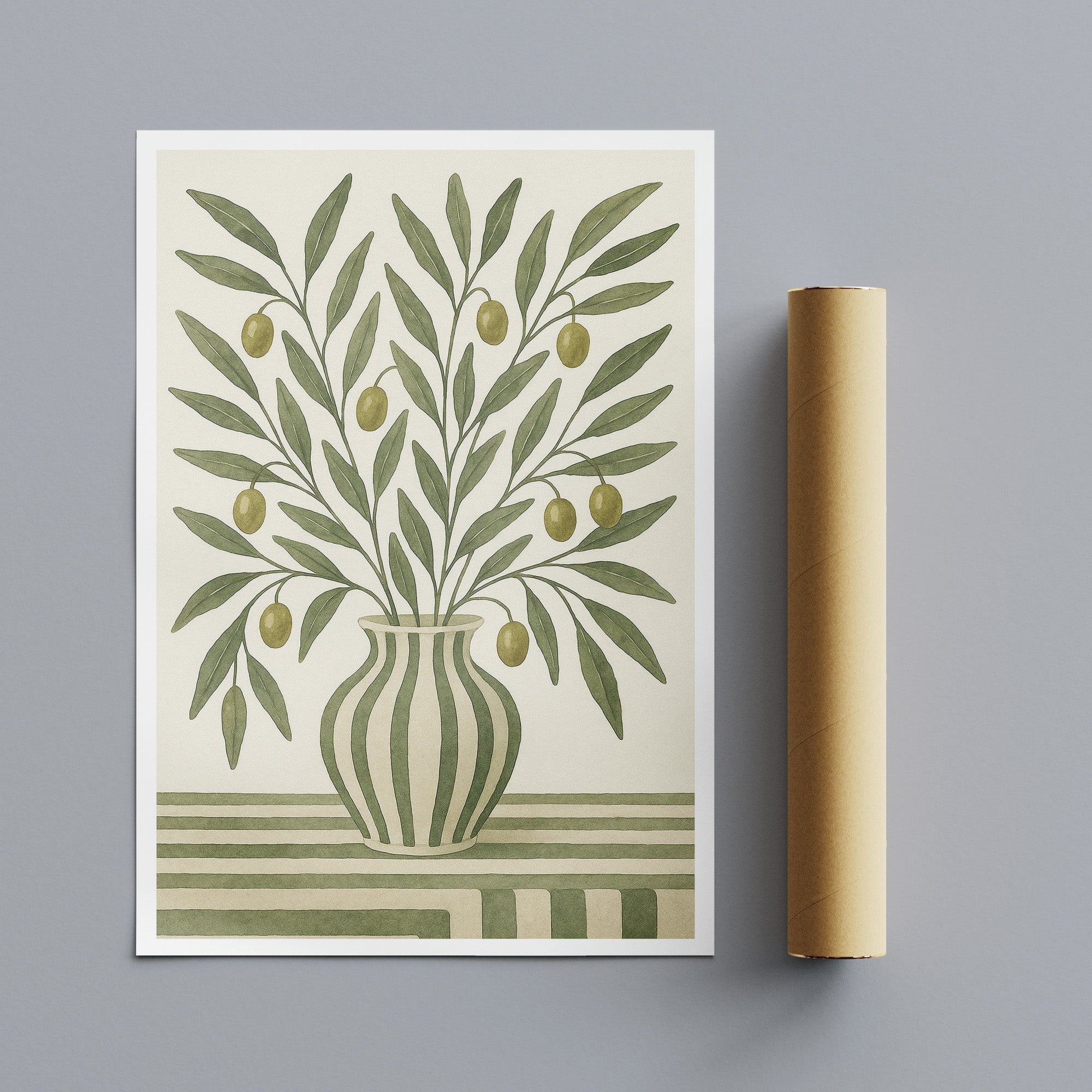 Green Olive Branches - Wall Art Rolled Canvas Print